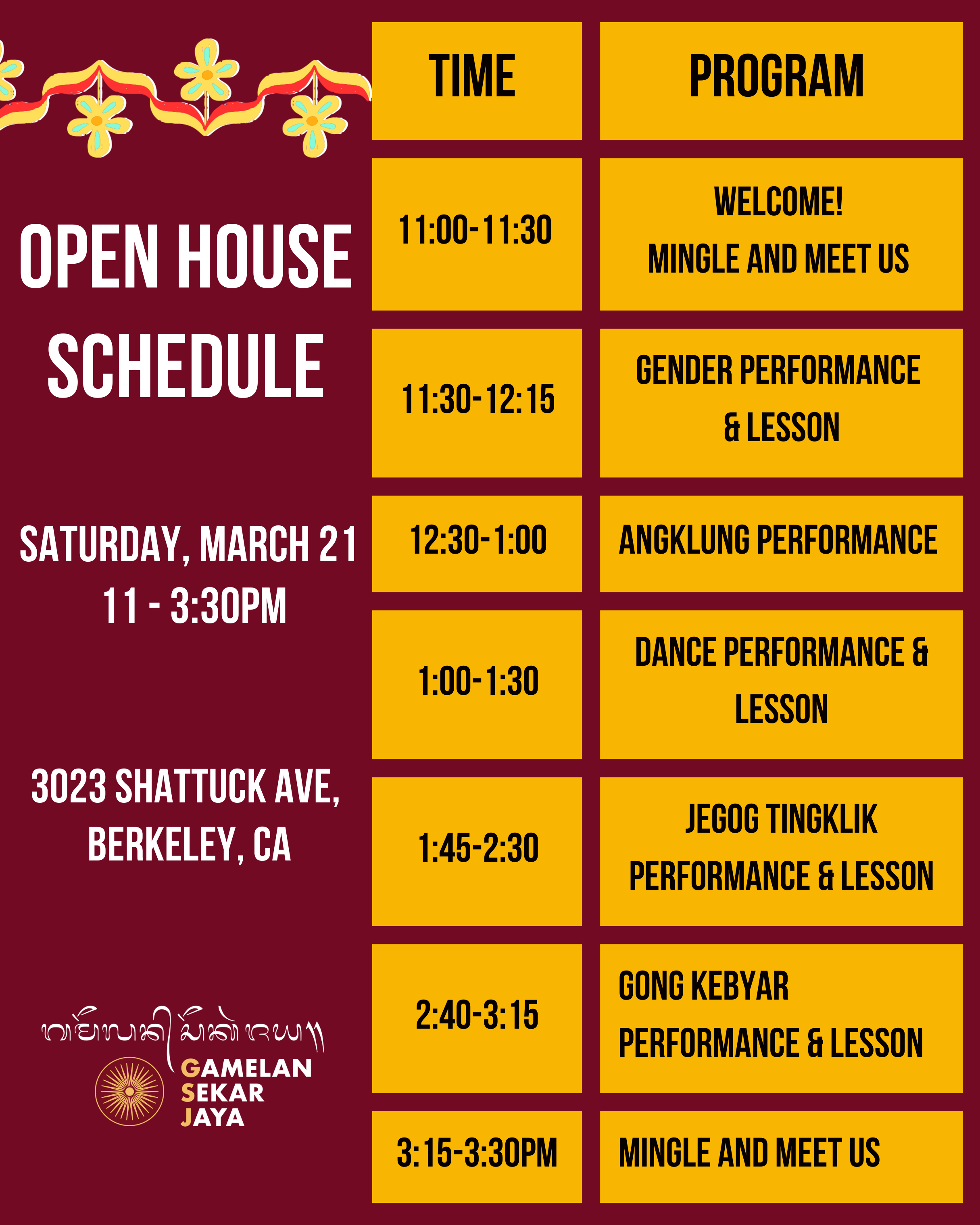 You are invited to join Gamelan Sekar Jaya for our annual Spring Open House.